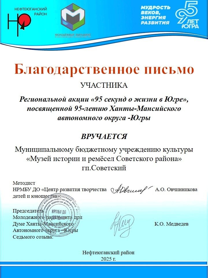 Её цель - рассказать о культуре, истории и достижениях региона. Сотрудники Музея истории и ремёсел Советского района приняли участие в акции, подготовив видео о конкурсе «Лесоруб Югры». Советский район известен развитой лесной промышленностью и талантливыми мастерами. С 2022 года здесь проходят конкурс «Лесоруб Югры» и фестиваль «Лесная сказка», приуроченные ко Дню работников леса.