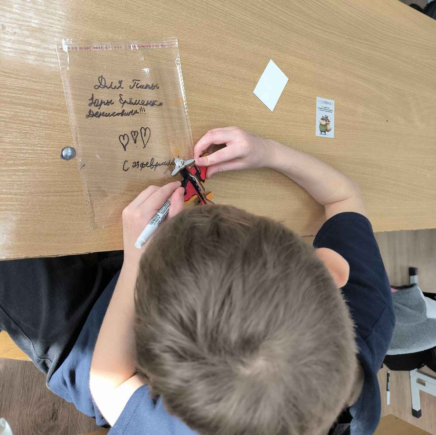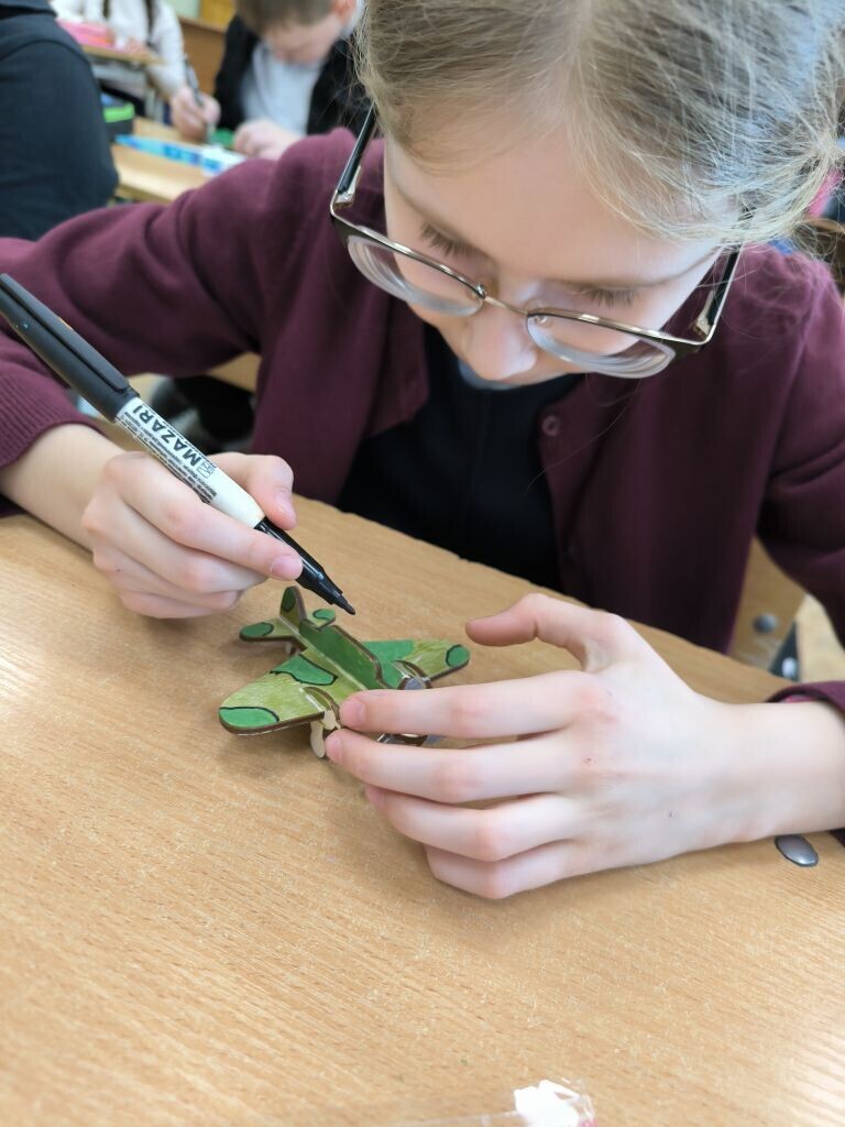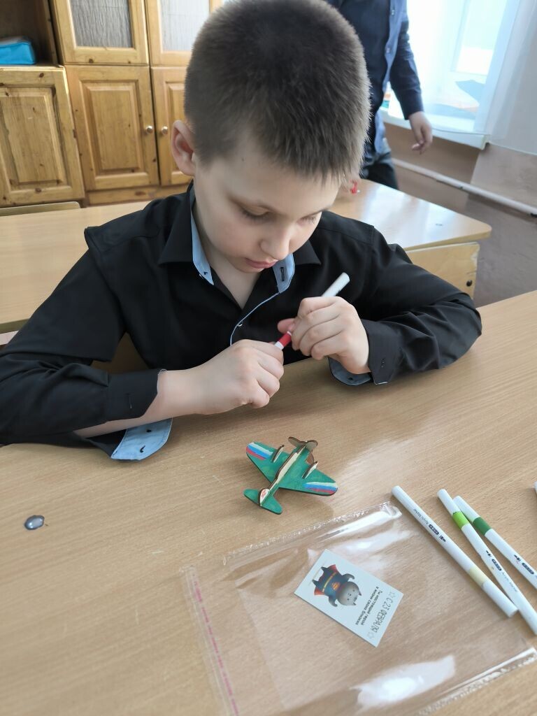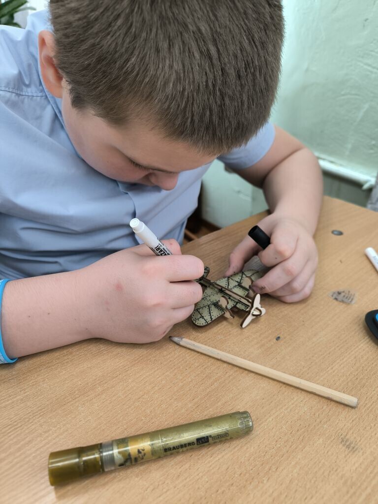 Вместо привычных кистей и красок в ход пошли яркие акриловые маркеры, а главным холстом стала деревянная заготовка в виде самолета. Мальчишки и девчонки с большим энтузиазмом взялись за дело. Каждый старался сделать свой самолетик самым красивым и необычным, ведь совсем скоро эти сувениры отправятся к адресатам.