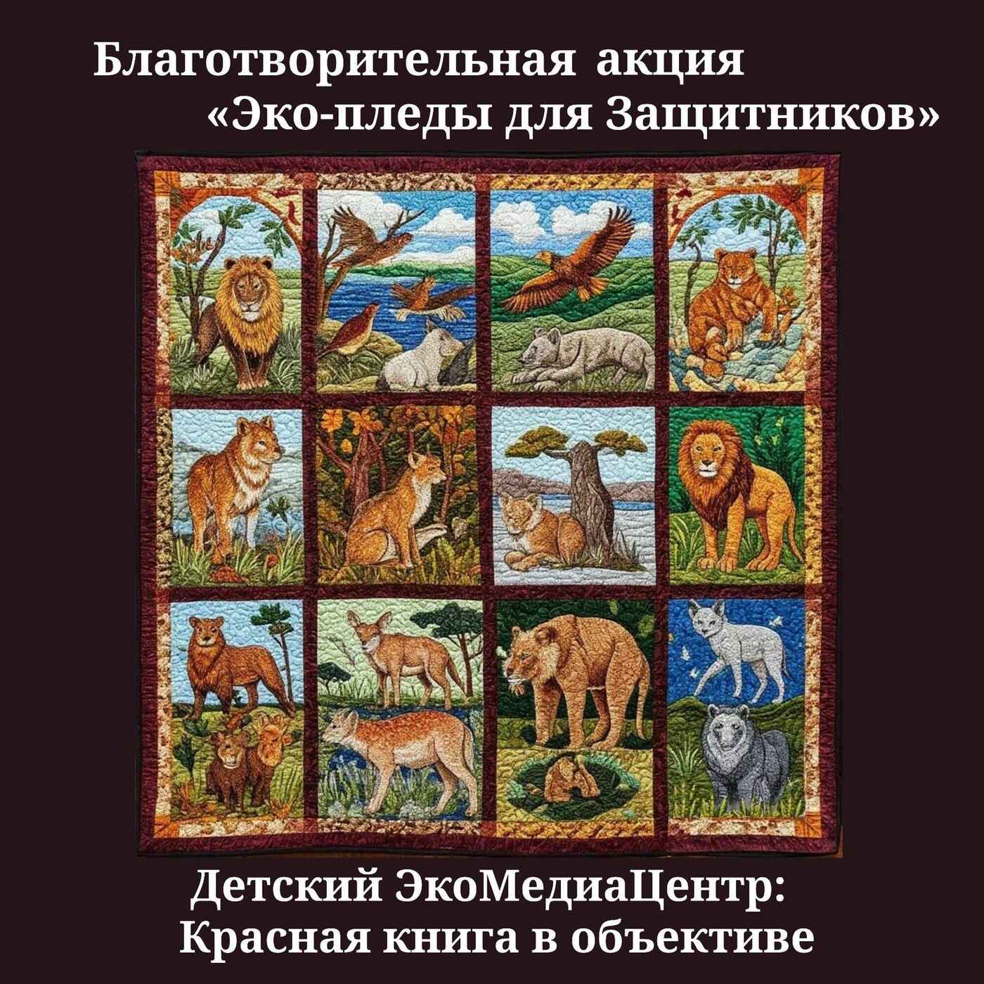 В ЧЕМ УНИКАЛЬНОСТЬ? Каждый плед будет сшит руками волонтёров и украшен принтами из 10 детских рисунков с редкими животными из Красной книги.