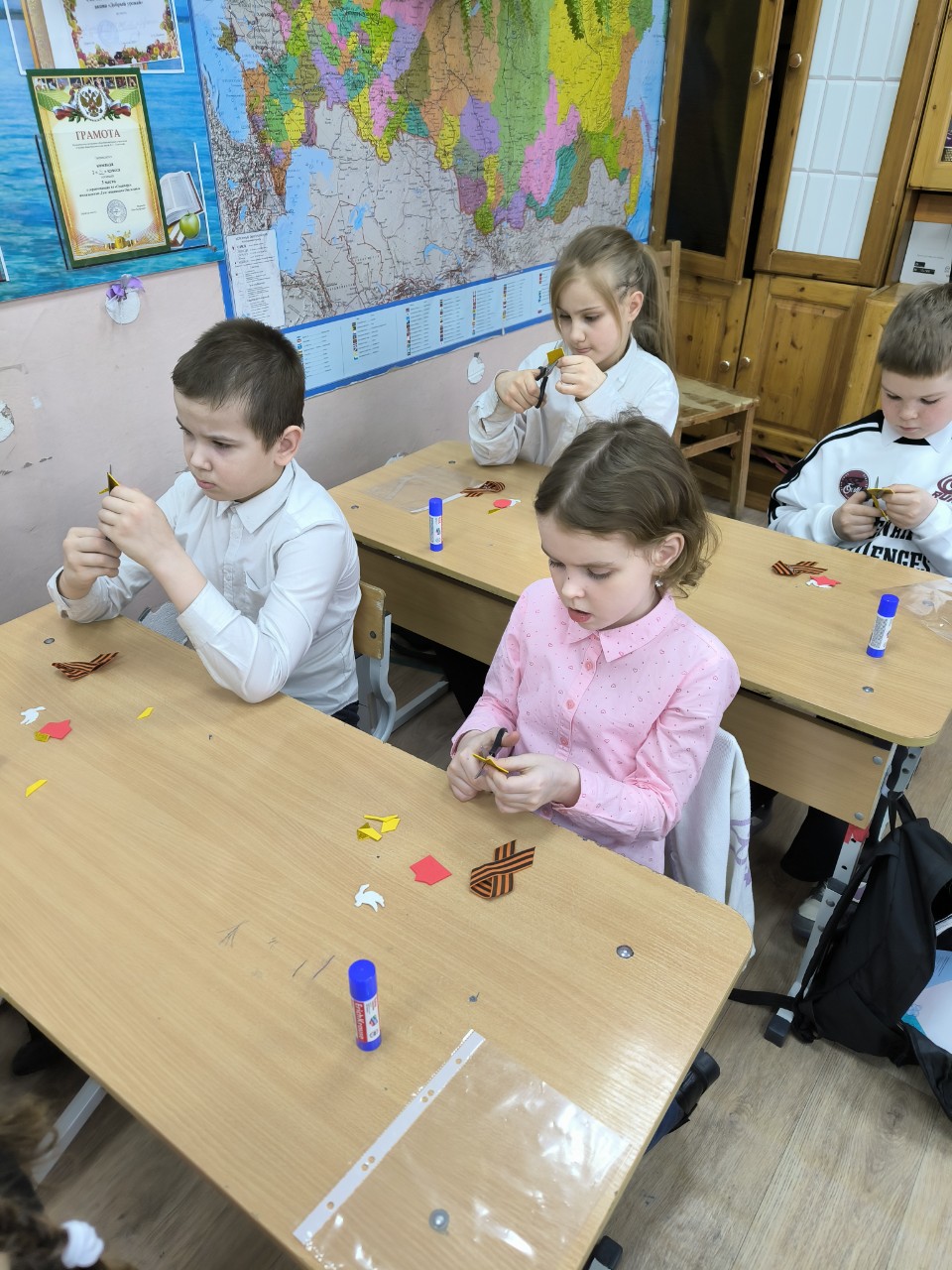 Все больше школьников Советского приобщаются к истории Георгиевской ленты, создавая патриотические броши ко Дню Великой Победы. Сегодня ученики 2Б класса МАОУ СОШ №1 г.Советский, ХМАО не только узнали, что символизирует Георгиевская лента и почему она стала знаком уважения к подвигу воинов и данью исторической памяти народа, но и закрепили знания на практике. Ребята собственноручно изготовили брошь «Победы» на мастер-классе от Музея истории и ремесел Советского района, поэтому теперь они точно знают о значении этого символа.