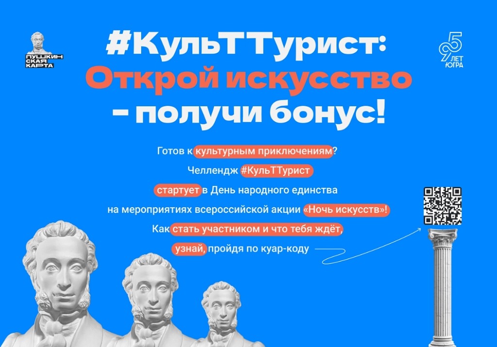 Готов к культурным приключениям? Специальный челлендж для обладателей Пушкинской карты стартует в День народного единства и дарит шанс целый год ходить на события бесплатно!