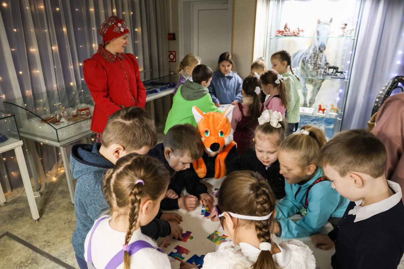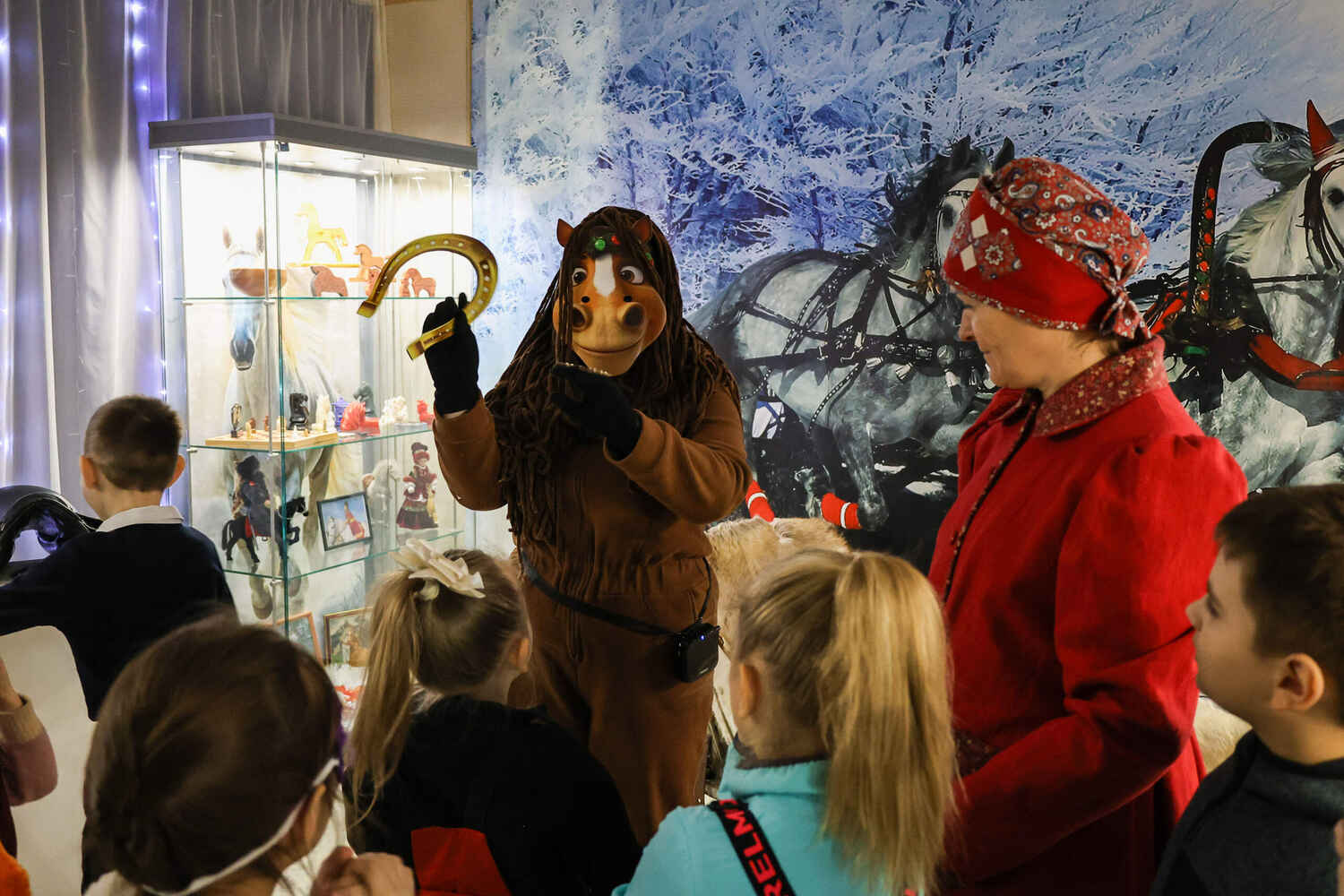 Путешествие началось с визита в уютную конную лавку. Ребята с интересом рассматривали миниатюрных лошадок на выставке «Я люблю свою лошадку», делились впечатлениями и угадывали, какая же лошадка зашифрована в музейных пазлах.
