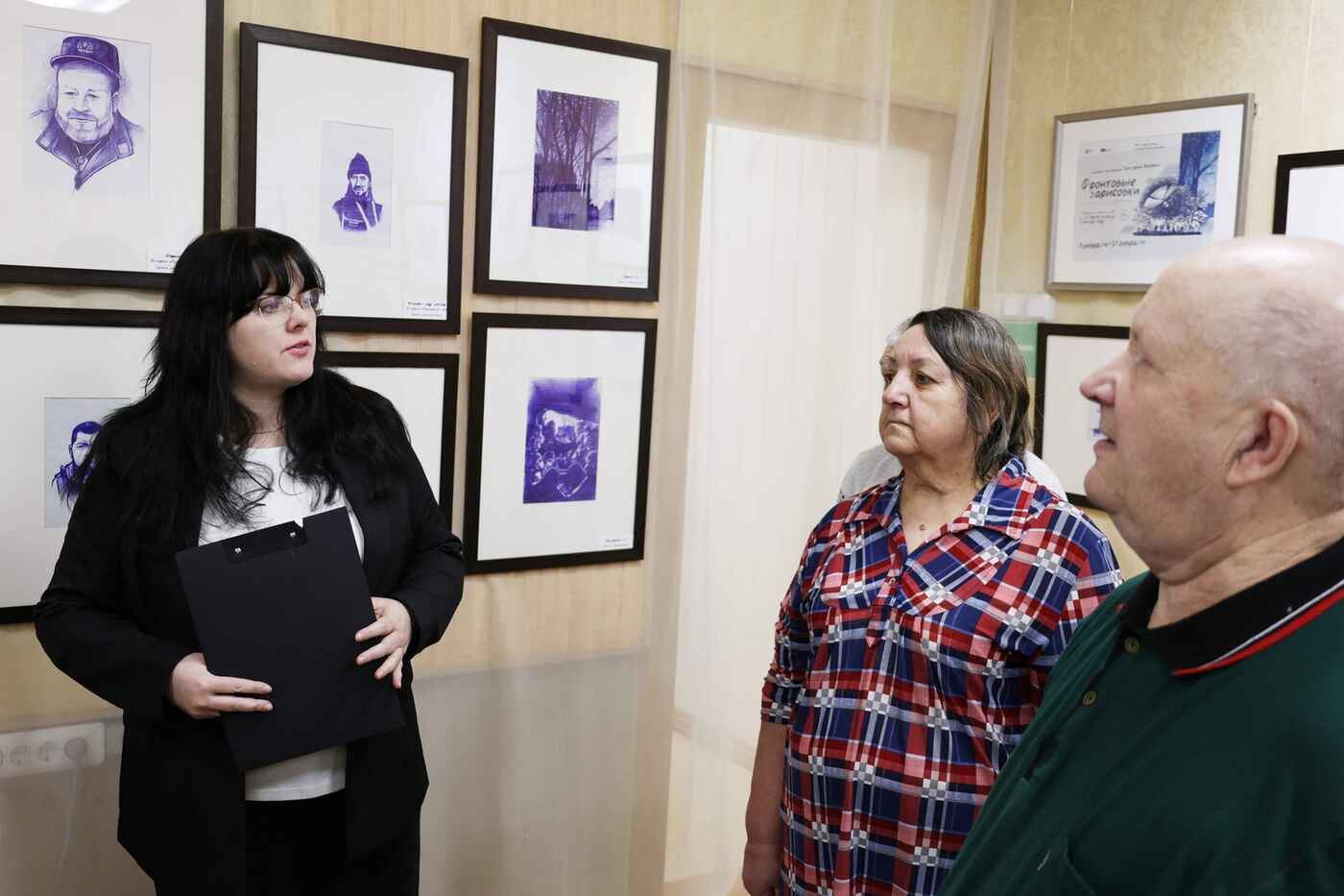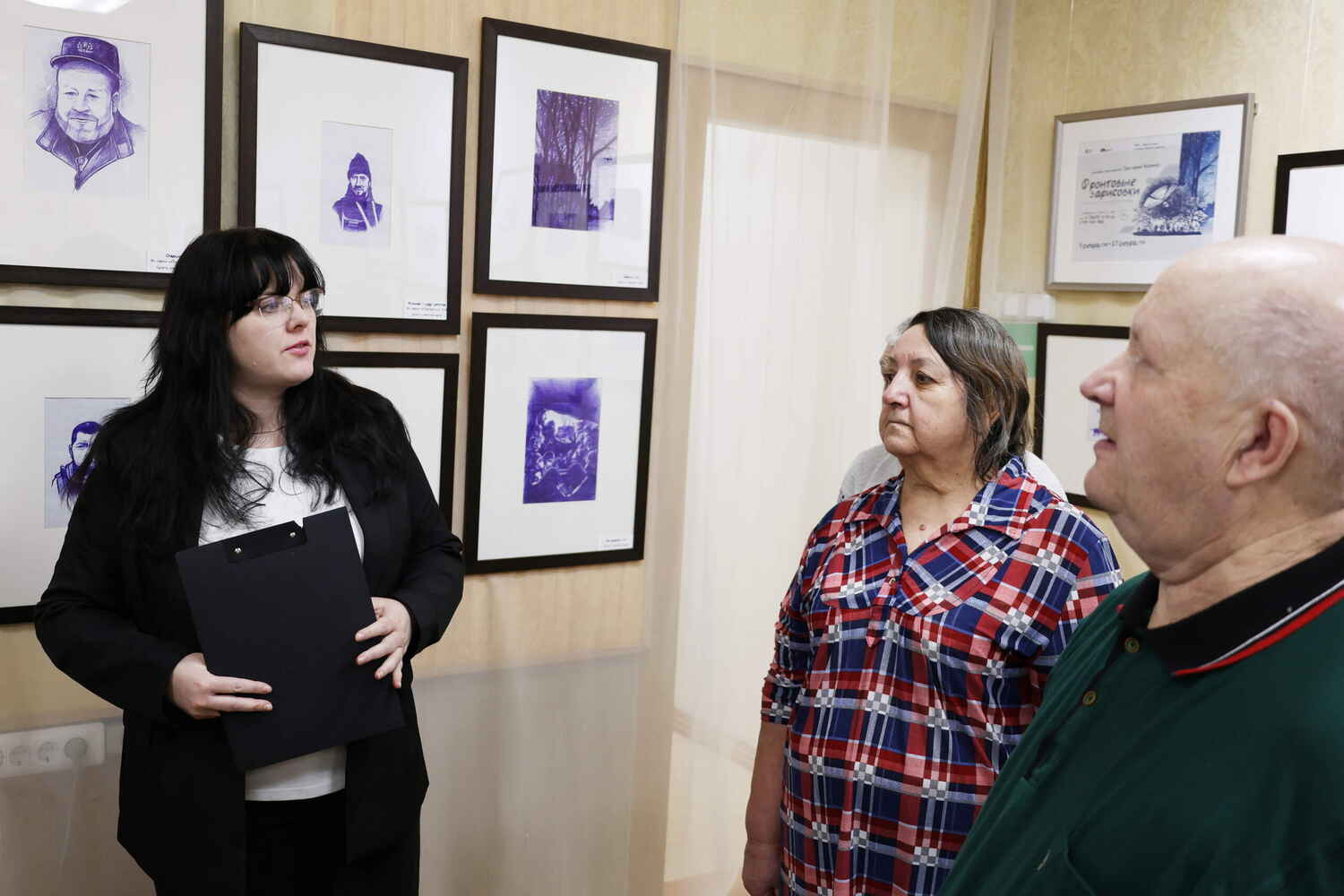 Гости познакомились с графическими работами Григория Косенко — сотрудника нашего музея, мобилизованного в зону СВО в 2022 году и сегодня продолжающего свою службу.