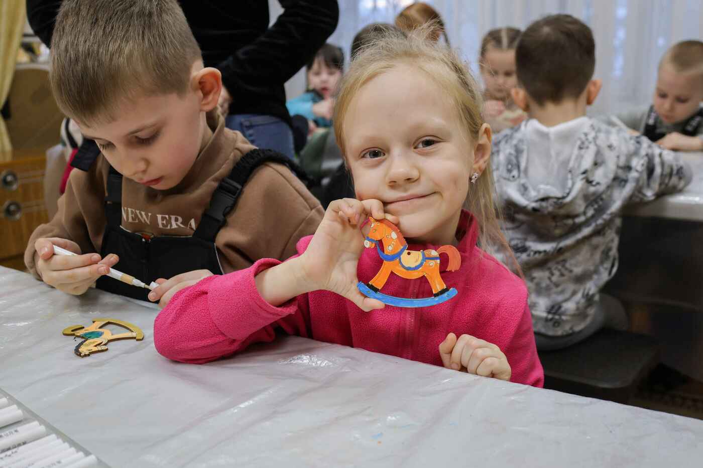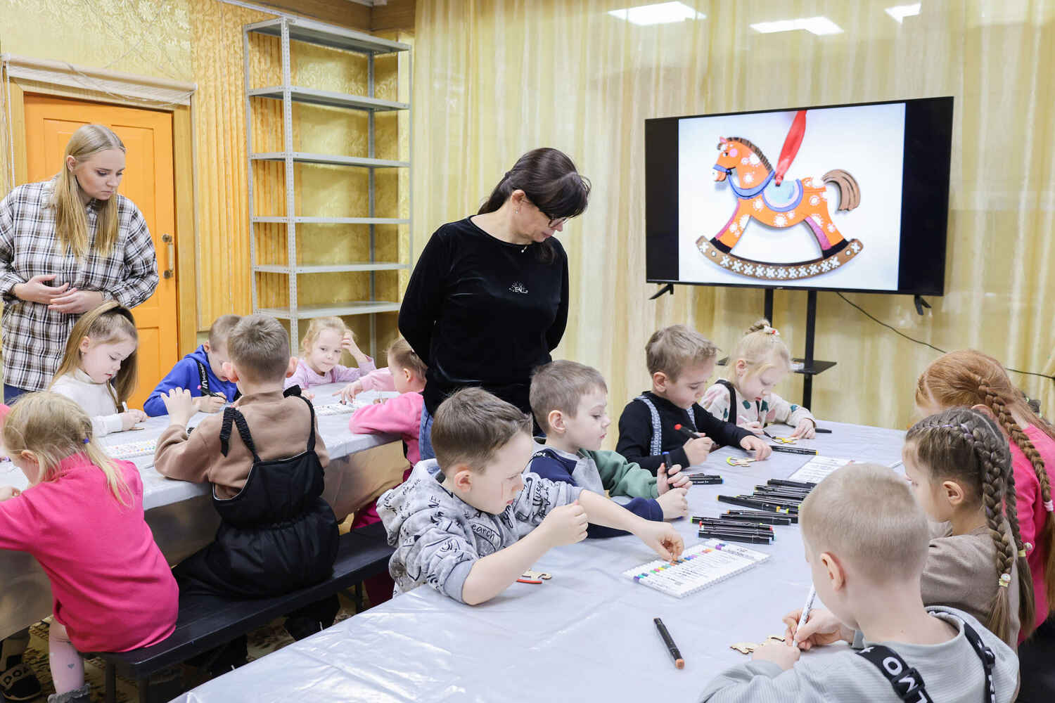 Для ребят был организован творческий мастер класс, посвящённый наступающему 2026 году. Вооружившись акриловыми маркерами, они старательно и аккуратно наносили штрихи, раскрашивая символ грядущего года - очаровательную лошадку.