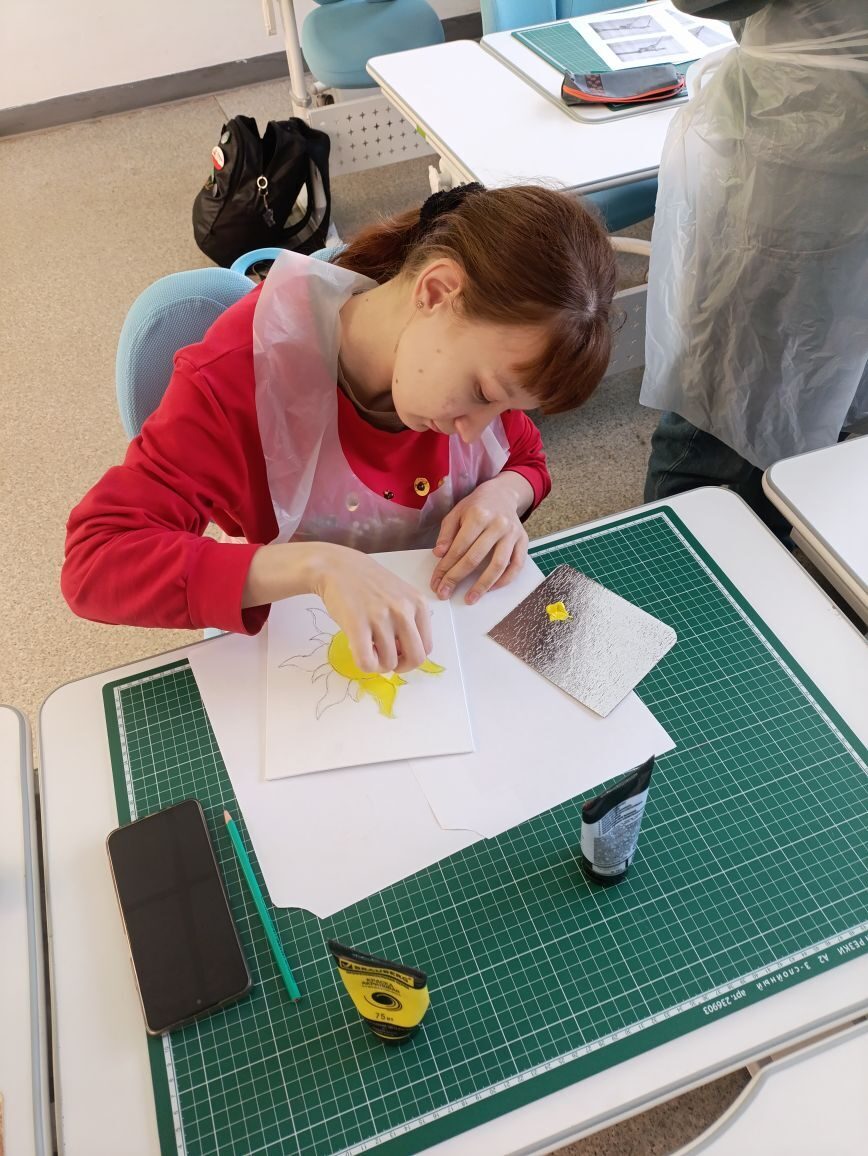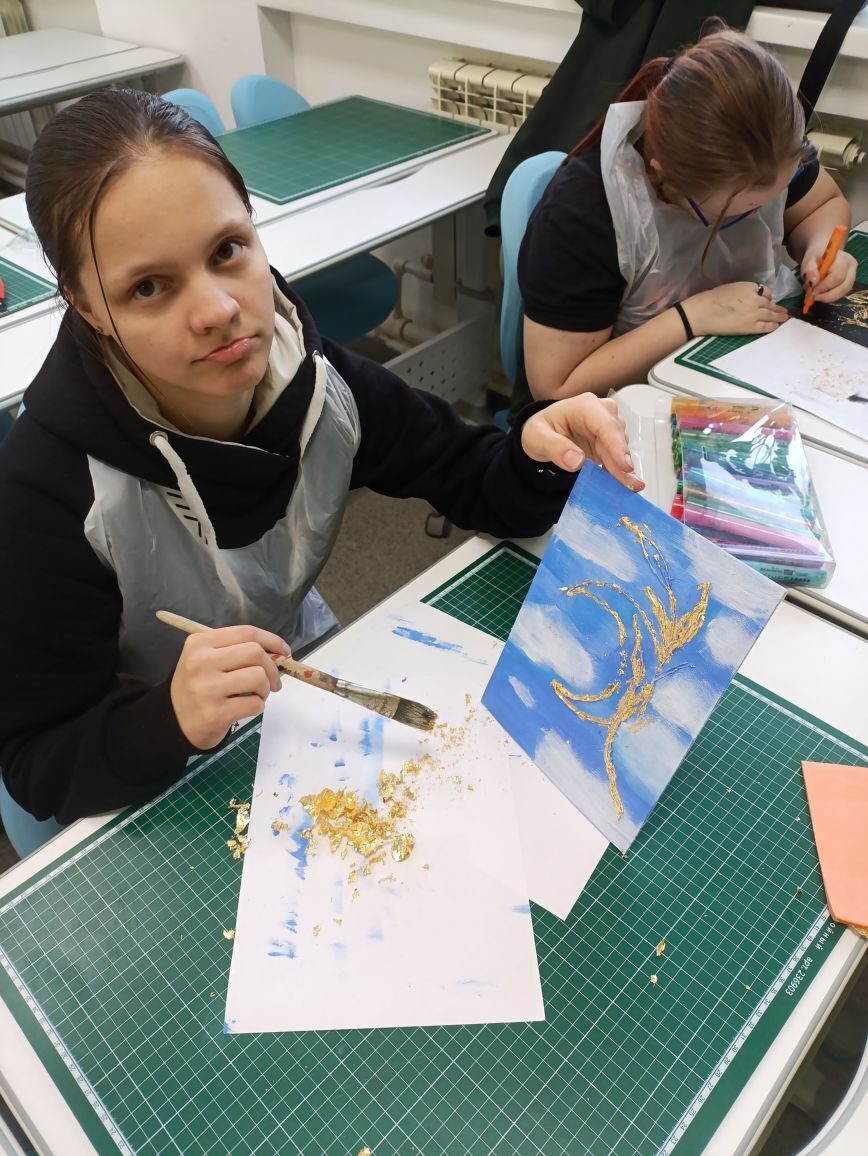 Сотрудники Музея истории и ремесел Советского района провели для них мастер-класс «Волшебный штрих потали». Под руководством методиста Анны Александровны Гарпит ребята научились создавать объёмные 3D-картины и освоили технику декора тончайшими листами потали - сусальным золотом. Этот благородный материал придаёт работам особый эффект неповторимого сияния.
