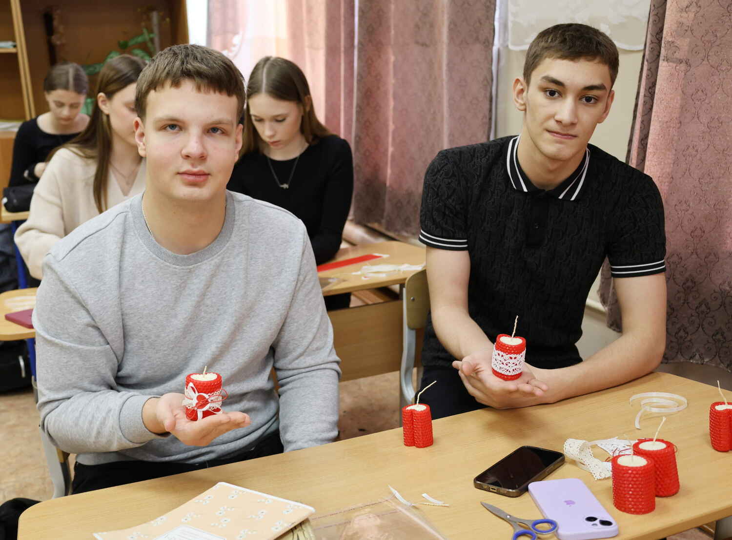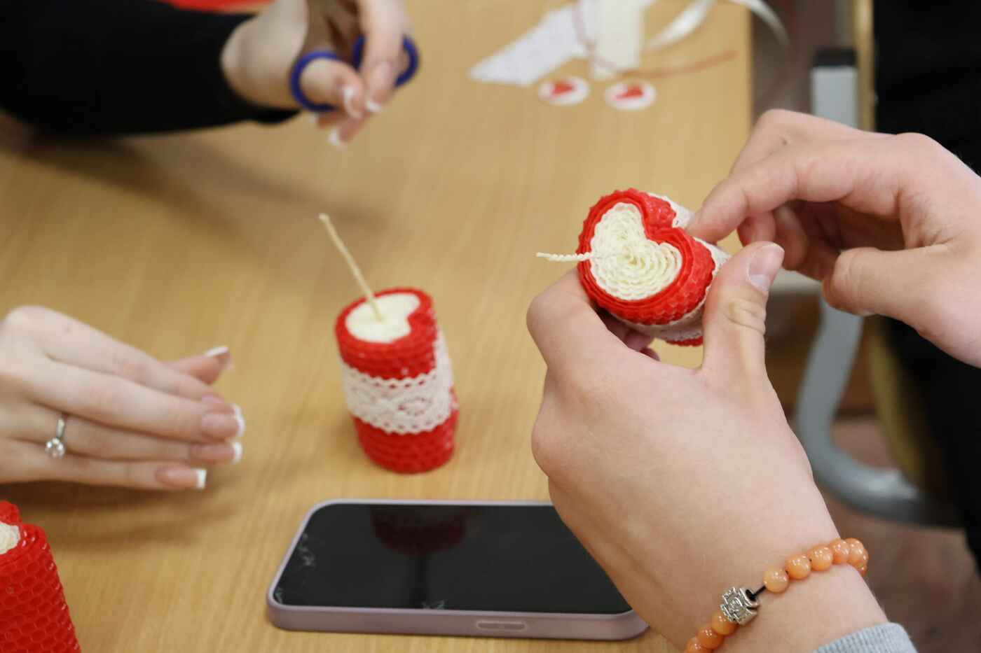 Ребята окунулись в атмосферу творчества. Часть из них создала своими руками свечи из натуральной вощины в форме красно-белых сердечек. Теплые, экологичные и очень душевные, эти свечи обязательно станут символом уюта.