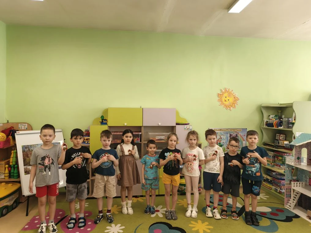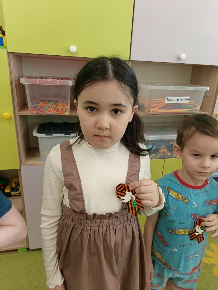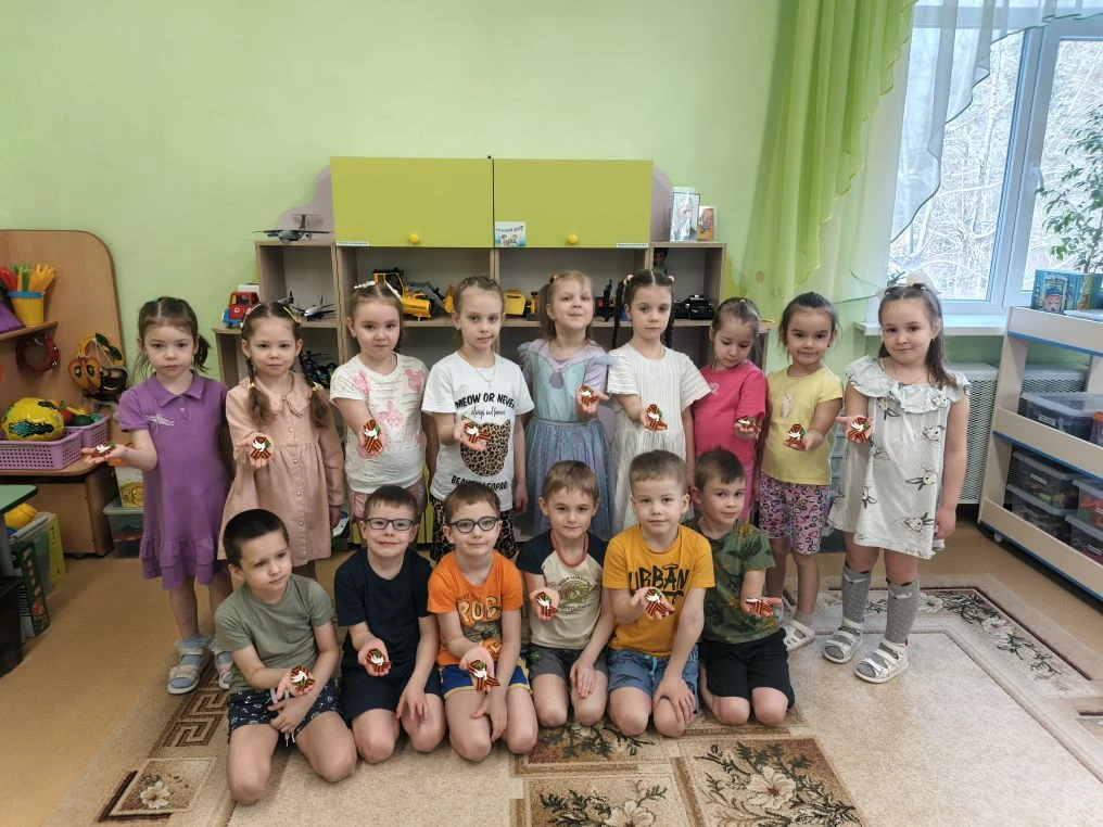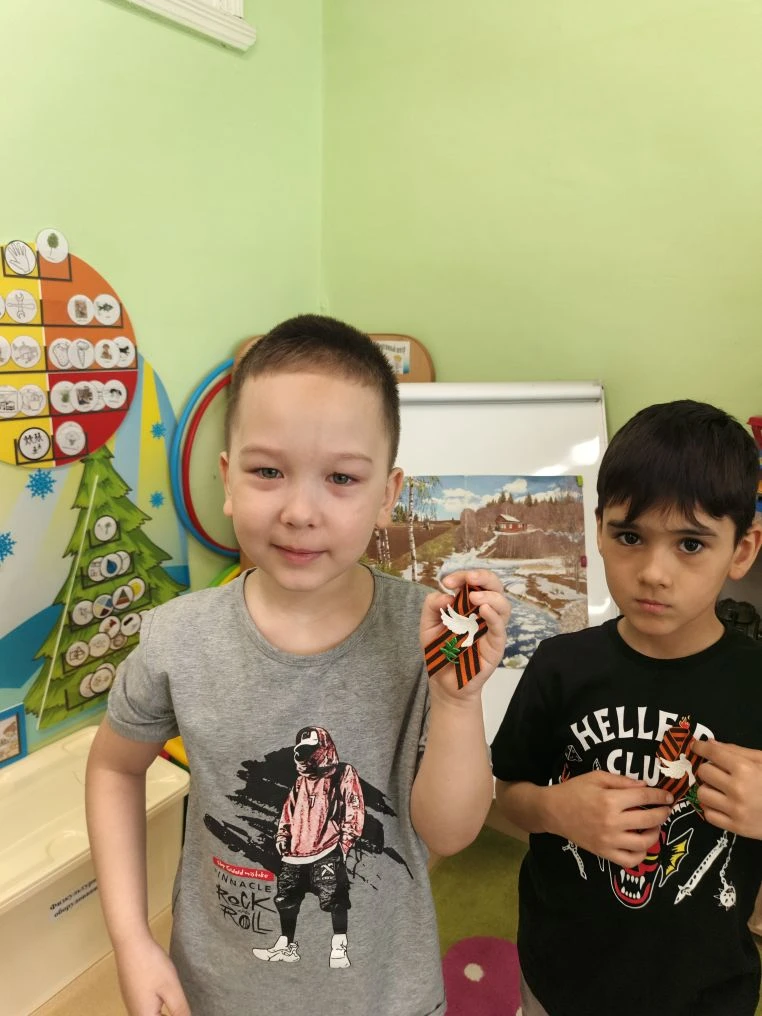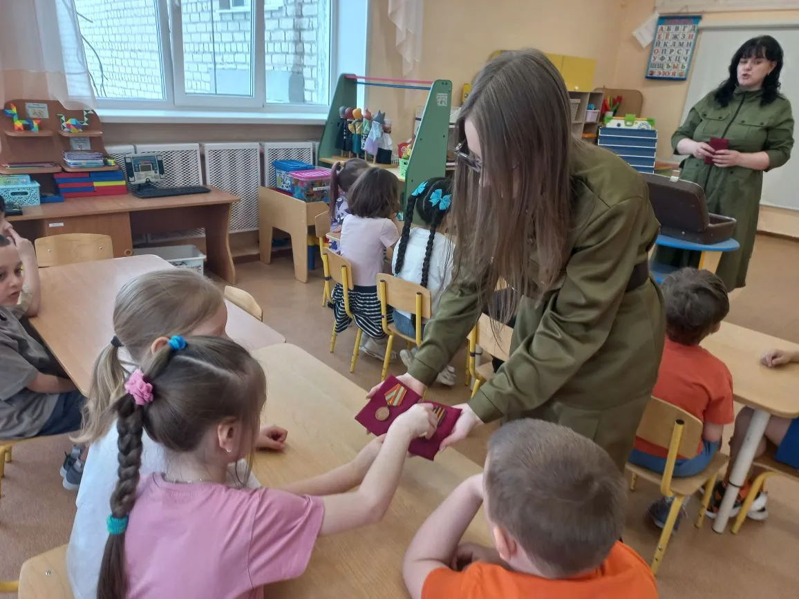 Выездное мероприятие под названием «Что принес солдат с войны» состоялось сегодня в городе Югорске. Его участниками стали воспитанники детского сада «Снегурочка» из групп «Звездочки», «Почемучки», «Светофорики» и «Знайки», которые также входят в отряд «Юнармия» Движения Первых. С помощью экспонатов, собранных в музейном чемодане, дети познакомились с историей рядового Александра и узнали, каким неимоверным трудом досталась нашему народу победа в Великой Отечественной войне. Каждый ребенок смог внимательно рассмотреть солдатские награды и личные вещи: армейский котелок, ложку и губную гармошку. Особый интерес вызвала военная пилотка, которую ребята смогли примерить. Кроме того, маленькие югорчане услышали отрывки из фронтовых писем-треугольников. В годы войны они были единственной ниточкой, связывавшей бойцов с родными. В завершение встречи дети изготовили брошь «Победа» из георгиевской ленты.
