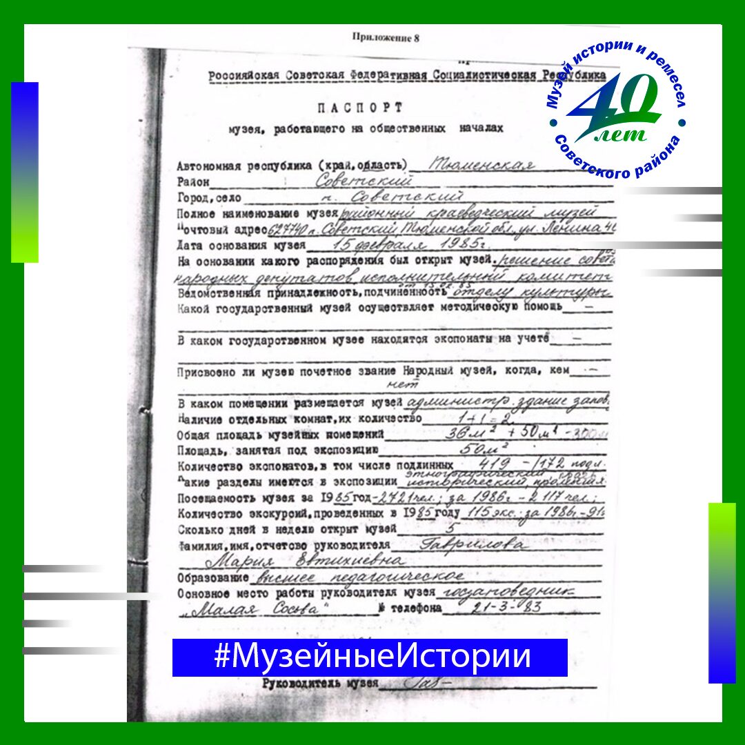 В 2025 году Музей истории и ремесел Советского района отмечает свой 40-летний юбилей. Спустя почти полвека, листая страницы музейной летописи, мы с гордостью называем его «памятной книгой нашего муниципалитета» и хотим поделиться с вами музейными историями и вспомнить все: от идеи создания и первых руководителей до реализации современных проектов, и мероприятий. Обо всем этом и даже чуть больше расскажет наша рубрика «Музейные истории». Сегодня вспоминаем начало официального становления Музея истории и ремесел Советского района. 15 февраля 1985 года исполнительный комитет Советского районного совета народных депутатов принял решение об открытии краеведческого музея на общественных началах. Его целью стала пропаганда истории района, изучение флоры и фауны, а также координация работы через образованный совет музея. Основой для нового учреждения стали два уже существовавших зала: краеведческий и зал природы, расположенные в административном здании заповедника «Малая Сосьва». Зал природы, как ведомственный отдел заповедника, занимал 50 кв. метров. Его экспозиция включала гербарии, чучела животных, карты и материалы, посвящённые природному разнообразию края и истории заповедного дела. Экспонаты размещались в витринах и музейных комплексах, создавая наглядную летопись таёжной экосистемы. С 1985 по 1990 гг. количество экспонатов выросло с 200 до 700 единиц хранения. Основу коллекции составили предметы, переданные в дар жителями, предприятиями и организациями района. Особый вклад в музейную коллекцию внесли и археологические находки. В 1989 году, как писала М. Гаврилова в статье «Из глубины веков»: «Работник Комсомольского ЛПУ обнаружил на месте святого лабаза на реке Эсс клад XVI–XVII веков: серебряные ожерелья, браслеты, литые кольца, шумящие подвески. Вместе с ними были представлены глиняные сосуды, каменные топоры и грузила эпохи неолита. Эти артефакты стали частью временной выставки, которая работала до 1991 года». С 1989 года музей начал активно развивать выставочную деятельность. Уже в этот же год была открыта «Выставка древностей» с археологическими находками. А в 1990 году - Этнографическая экспозиция и выставка «История государства Российского в денежных знаках». В то время сотрудники ежегодно проводили от 50 до 90 экскурсий, а общая посещаемость достигала 3000 человек в год. Музей стал центром культурной жизни района, объединяя школьников, краеведов, учёных и местных жителей. Собирая, сохраняя и популяризируя историю, музей превратился в важное культурное явление. Его экспонаты стали своеобразным мостом между поколениями, напоминание о богатстве природы и трудах тех, кто осваивал и изучал северный край.